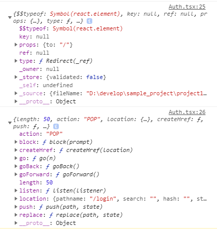위의 객체가 Redirect, 아래의 객체가 history이다.