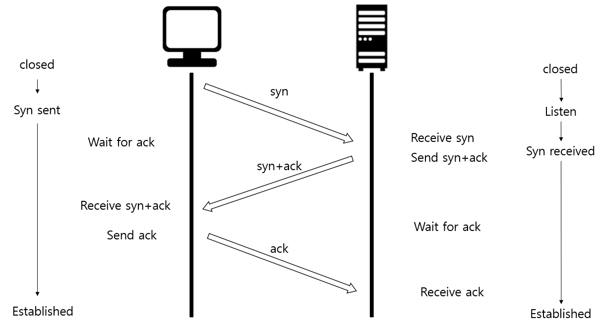 - 3way-handshake를 한다.