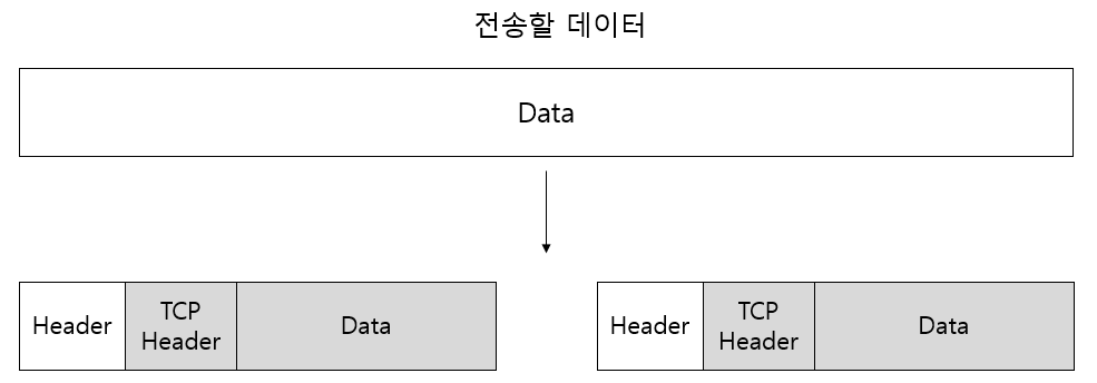- 데이터를 송수신 할 때 송신측에서 데이터 쪼갠 후 수신측에서 데이터를 다시 조립하여 수신하는 형태로 송수신한다.
