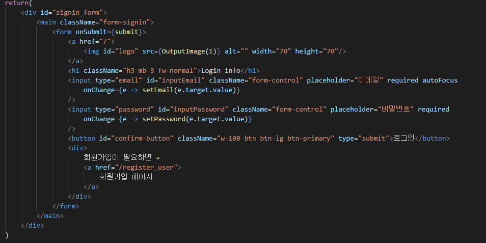 로그인페이지 (email과 비밀번호를 이용하여 로그인)