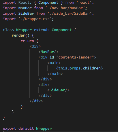 내부에 Contents는 없지만 navigation bar와 side bar가 같이 랜더링 되도록 Wrapper를 설정해주었다.