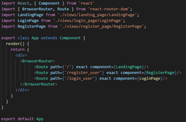 App.tsx에서 각각 화면으로 진입할 수 있도록 BrowserRouter에서 아래와 같이 설정하였다.