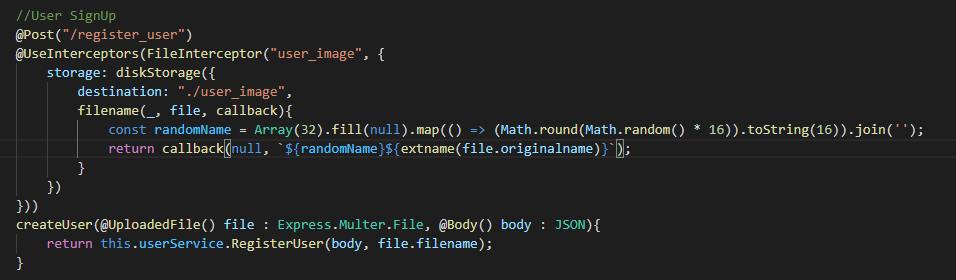 nestjs에서 파일을 전송받기위해 FileInterceptor를 다음과 같이 설정했다.