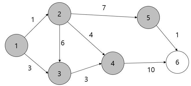 1번 노드에서 부터 6번 노드까지의 최단거리를 구해야 된다고 생각해보자.