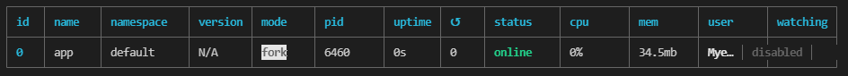 위의 과정에서 일어난 일은 pm2의 명령어를 통하여 확인도 가능하다.