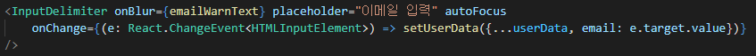 이 사진은 input박스의 데이터 변화를 감지하여 state에 데이터를 변경해주는 코드이다.