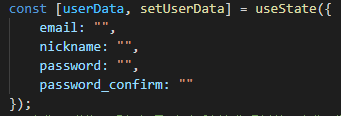 위의 사진은 useState hook을 이용하여 입력받을 데이터데 대한 초기화를 해놓은 형태이다.