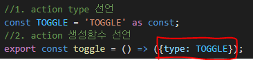 2. action생성함수(Action Creatros)에서 action을 객체형태로 만들어 reducer로 반환한다.